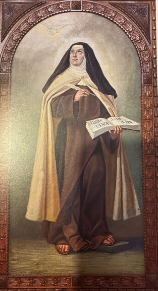Ciò che affascina di più nella personalità di S. Teresa d'A-vila è l'armonioso coagularsi in maturante sintesi di valori compositi, che vanno dalla giovialità, alla dolcezza, dalla forza d'animo alla perseverante tenacia, dalla rapida intuizione all'esatta percezione della propria debolezza, dal bisogno di nascondersi in Dio all'urgenza di una chiamata alla testimonianza sulle strade di quasi tutta la Spagna. Forte e cosciente umanesimo e vigorosa spiritualità si sposano in Teresa in modo perfetto; così la donna e la santa non sembrano mancare di nessun anello per disegnare una tipicità d'immagine sempre proponi-bile.Paolo VI la proclamò Dottore della Chiesa nel 1970.